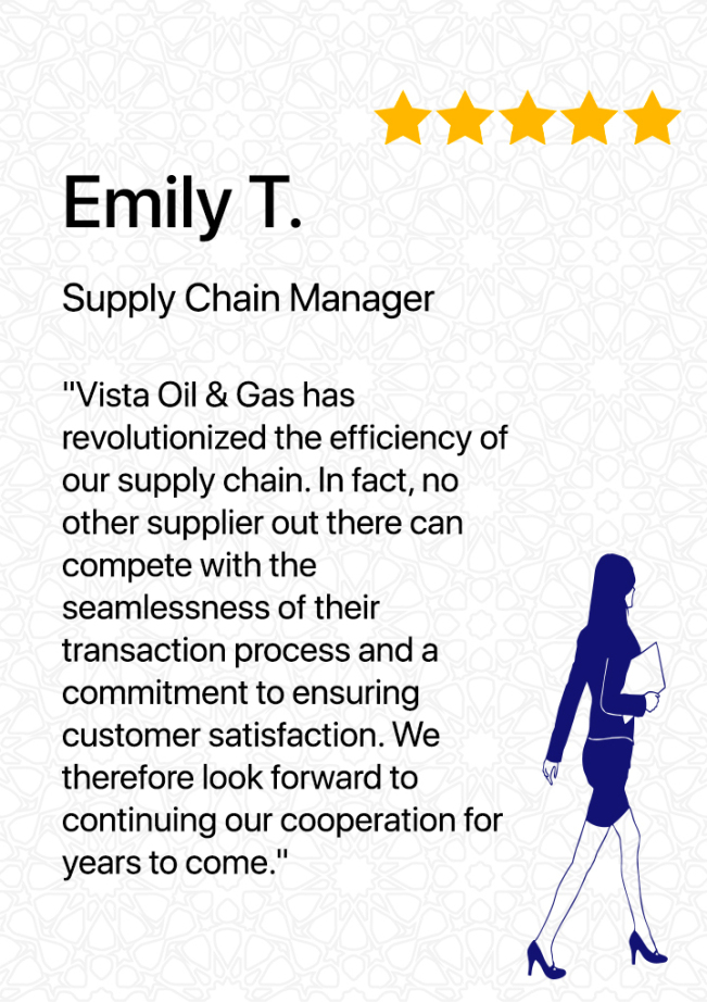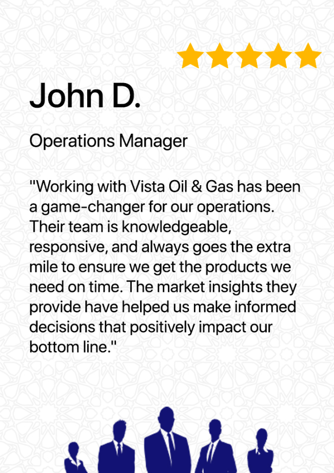 Bij Vista Oil & Gas Holding B. V. zijn we trots op het opbouwen van sterke relaties met onze klanten, en hun feedback is een bewijs van onze toewijding aan uitmuntendheid. Dit is wat sommige van onze gewaardeerde klanten te zeggen hebben over hun ervaring met ons: